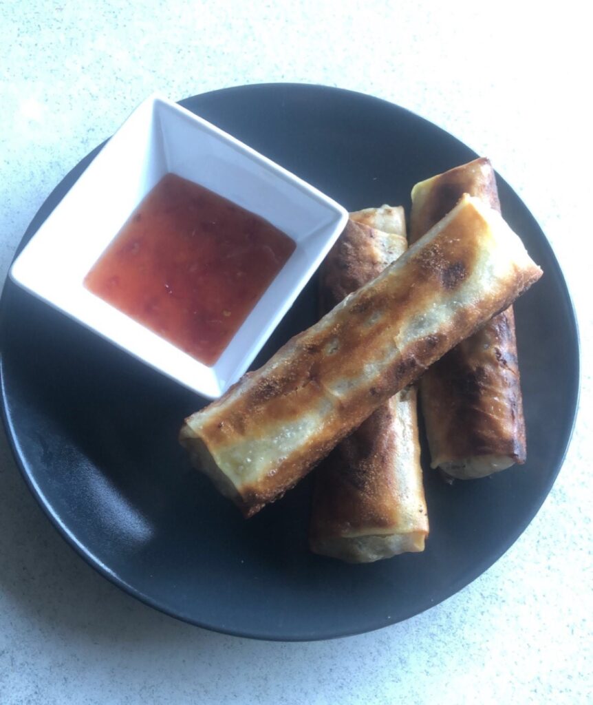 - fold nu dejen sammen og lav den til en forårsrulle. luk rullen med lidt æg.