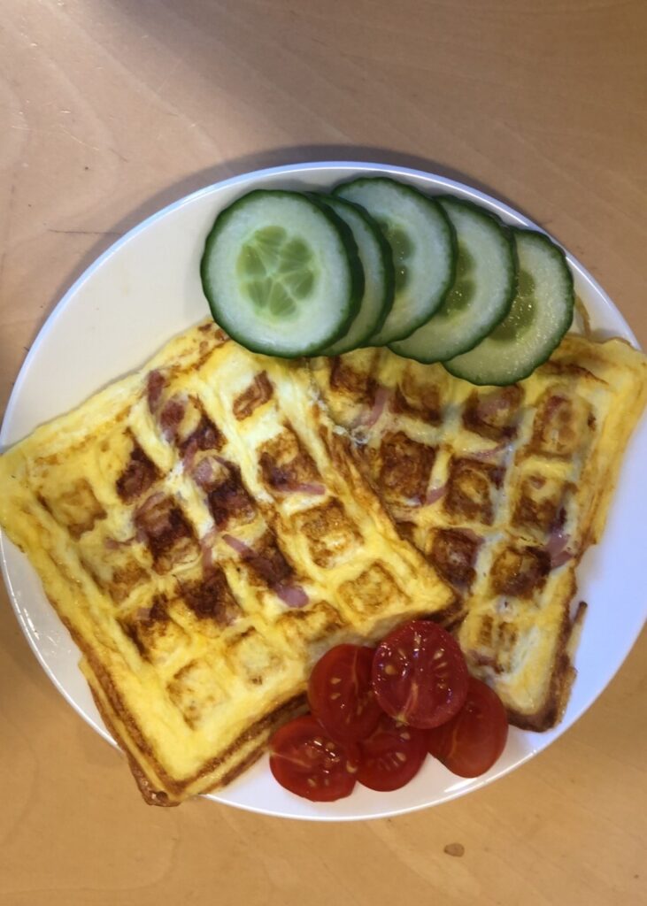 - Pisk æggene med philiadelphia, vand, salt og peber