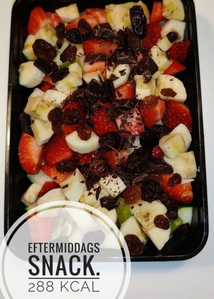 - skær frugterne i små stykker og læg det i en skål el bøtte